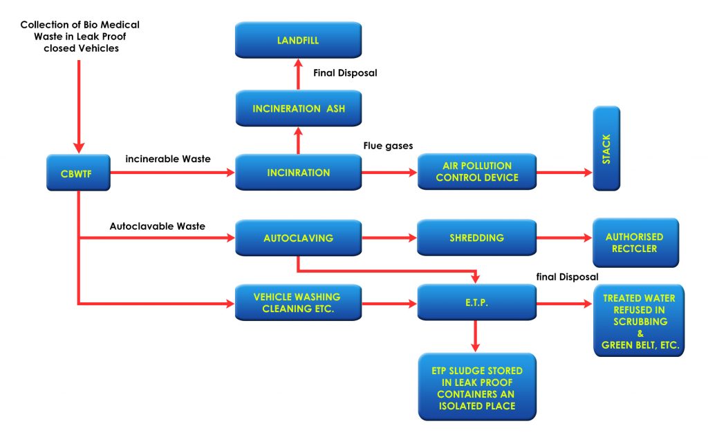 Ess Kay Hygienic Services a common Bio Medical waste treatment facility authorised by Haryana State Pollution Control Board follows the BMW Rules for collection, transportation, treatment and disposal of BMW. The overall treatment and disposal process followed is depicted through the flow diagram. THE OVERALL PROCESS FOLLOWED BY ESS KAY HYGIENIC FOR BIO MEDICAL WASTE TREATMENT AND DISPOSAL